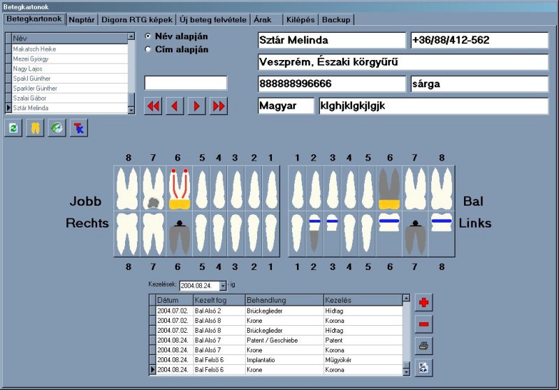 Betegnyilvántartó program / Krankenregister für Zahnärzte